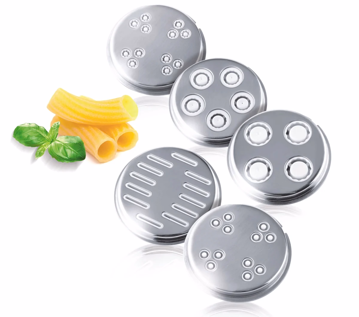 Tészta készítő tartozékok, ETA 0028, 0023 robotokhoz és x075 húsdarálóhoz való tészta készítő tartozékok, Ideális többféle üreges tészta készítéséhez (Rigatoni, Ditaloni Rigati, Rigatoni/Maccheroni, Penne, Papperdelle, Stelline, Anellini, Lisce, Ditalini), 5 féle cserélhető tartozék, Rozsdamentes kivitel, Egyszerű és gyors összeszerelés, Könnyű karbantartás, mosogatógépben mosható, ETA002891000 húsdarálóval, kiegészítő tartozékkal használható