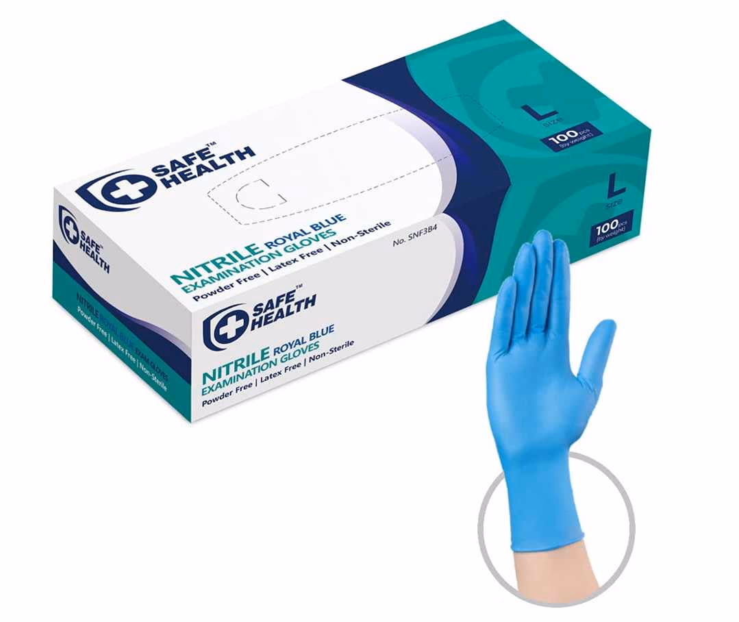 Safehealth kék púdermentes nitril kesztyű, 3,5g, 100 db