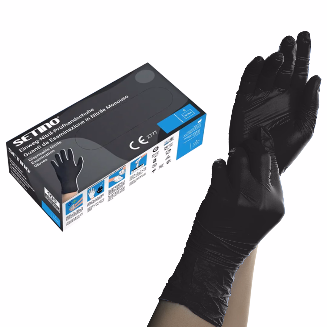 SETINO fekete Nitril púdermentes vizsgálókesztyű, 3,5 g, 100/doboz, XL méret