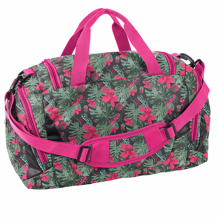 Bag, one main compartment, two side pockets with vents, one front pocket, padded bottom, adjustable shoulder strap, water repellent fabric