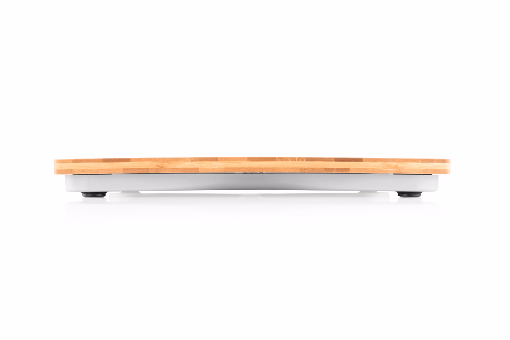 KAPACITÁS: 180 kg-ig • LÉPÉS: 100 g • EGYSÉGEK: kg / lb / st • LCD kijelző • Azonnal mér - elég csak rálépni a mérlegre • Automatikus kikapcsolás • Túlterhelési és gyenge elem indikátor • Bambuszból készült mérőfelület • Csúszásgátló lábak • Mérleg tápellátása: 3 x AAA elem (csomagolás tartalma) • SZÍN: természetes bambusz