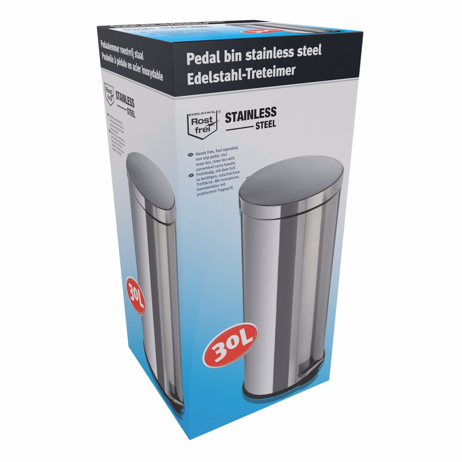 Szemetes 30 liter króm, pedálos, D29x64,5cm