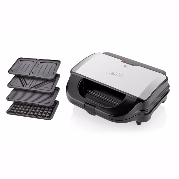 Az ETA315190010 ETA Sorento egy elegáns elektromos szendvicssütő, amely 4 pár cserélhető, tapadásmentes felületű lappal felszerelt. Klasszikus háromszög, négyszögletes kagyló szendvicsek, grillezési felület és gofri sütésre való lapok közül választhat. A sütés és a grillezés nem csak sok ízű lehet, hanem sok formájú is!