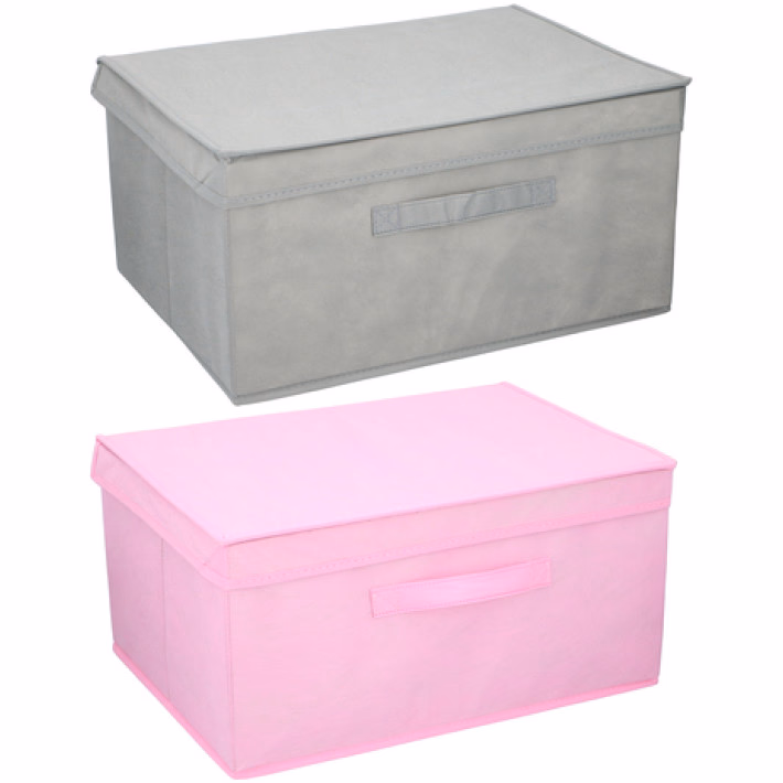 Tároló doboz 44x33x22cm tetővel, 2 színben pink/szürke