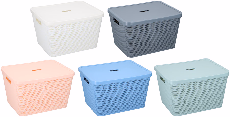 Tároló doboz műanyag, fedeles 36x29x21cm, 5 színben