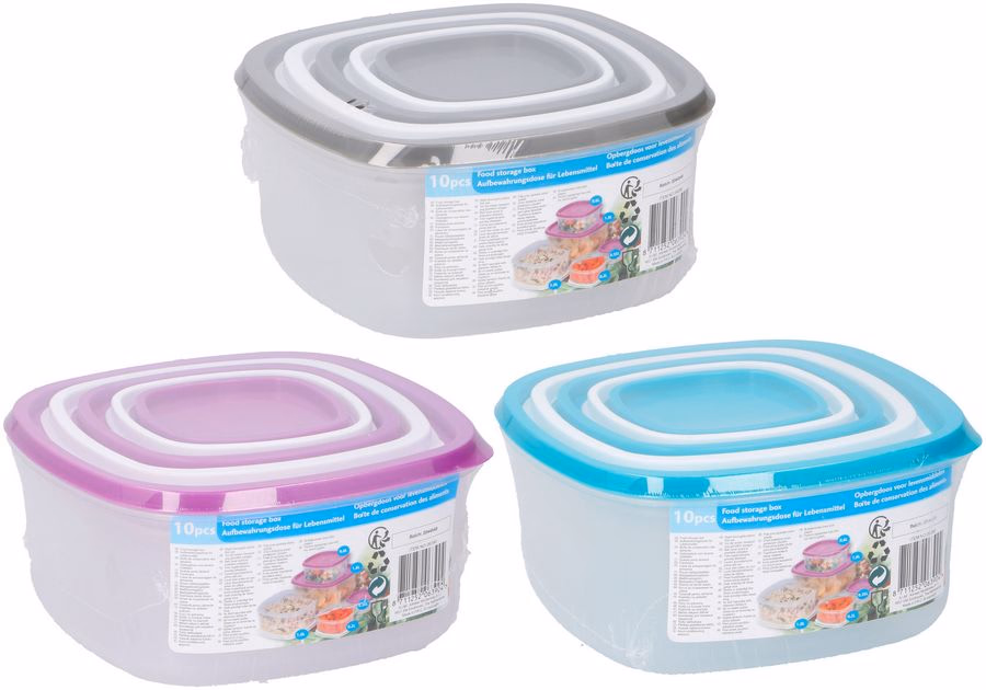 Tároló doboz szett 10 részes, műanyag, 3 színben