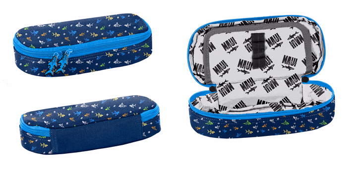 Premium padded pencil case, one compartment, additional partition inside, made all over with pattern fabric