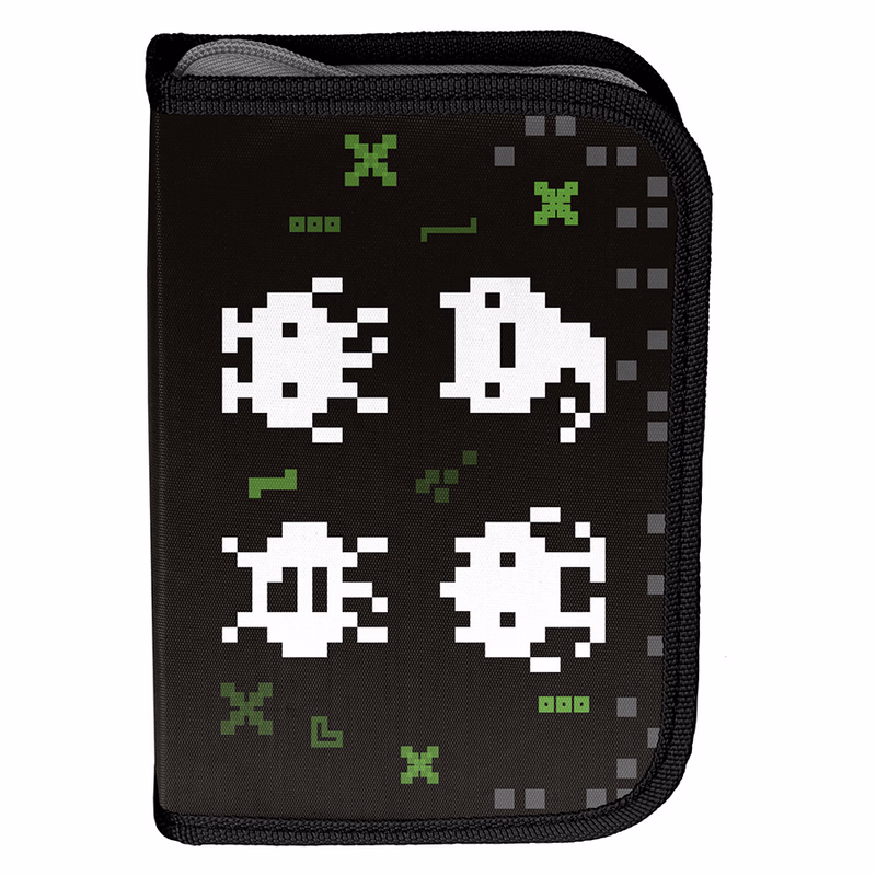Pencil case with stationery (pen, pencil, seven felt-tip pens, nine crayons, rubber, ruller, pencil sharpener, set square, timetable, multiplication board).