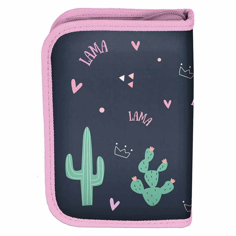 Pencil case with stationery (pen, pencil, seven felt-tip pens, nine crayons, rubber, ruller, pencil sharpener, set square, timetable, multiplication board).