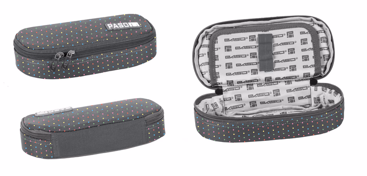 Premium padded pencil case, one compartment, additional partition inside, made all over with pattern fabric