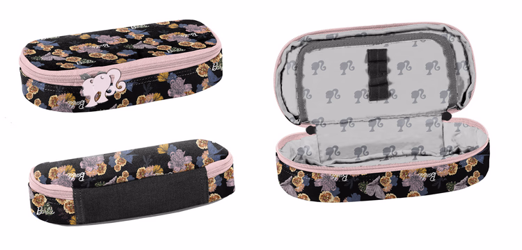 Premium padded pencil case, one compartment, additional partitions inside, made all over with pattern fabric