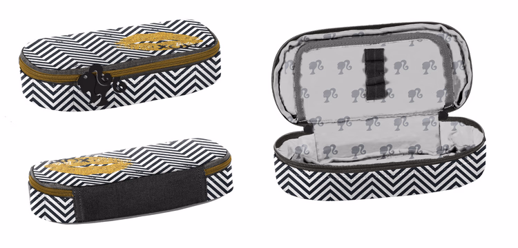 Premium padded pencil case, one compartment, additional partitions inside, made all over with pattern fabric