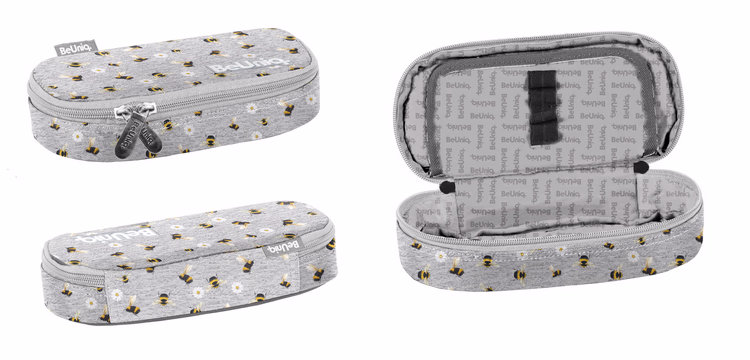 Premium padded pencil case, one compartment, additional partitions inside, made all over with pattern fabric