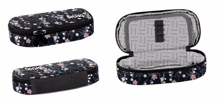 Premium padded pencil case, one compartment, additional partitions inside, made all over with pattern fabric
