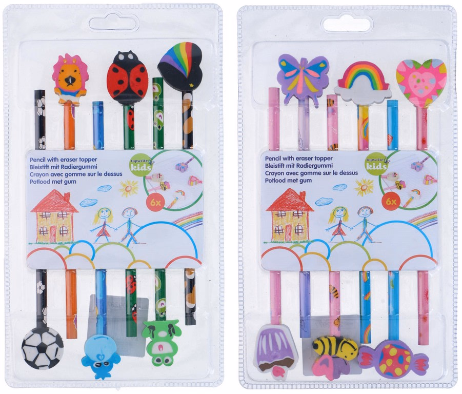 TOPWRITE Ceruza radírral 6db állat mintás, 2 féle