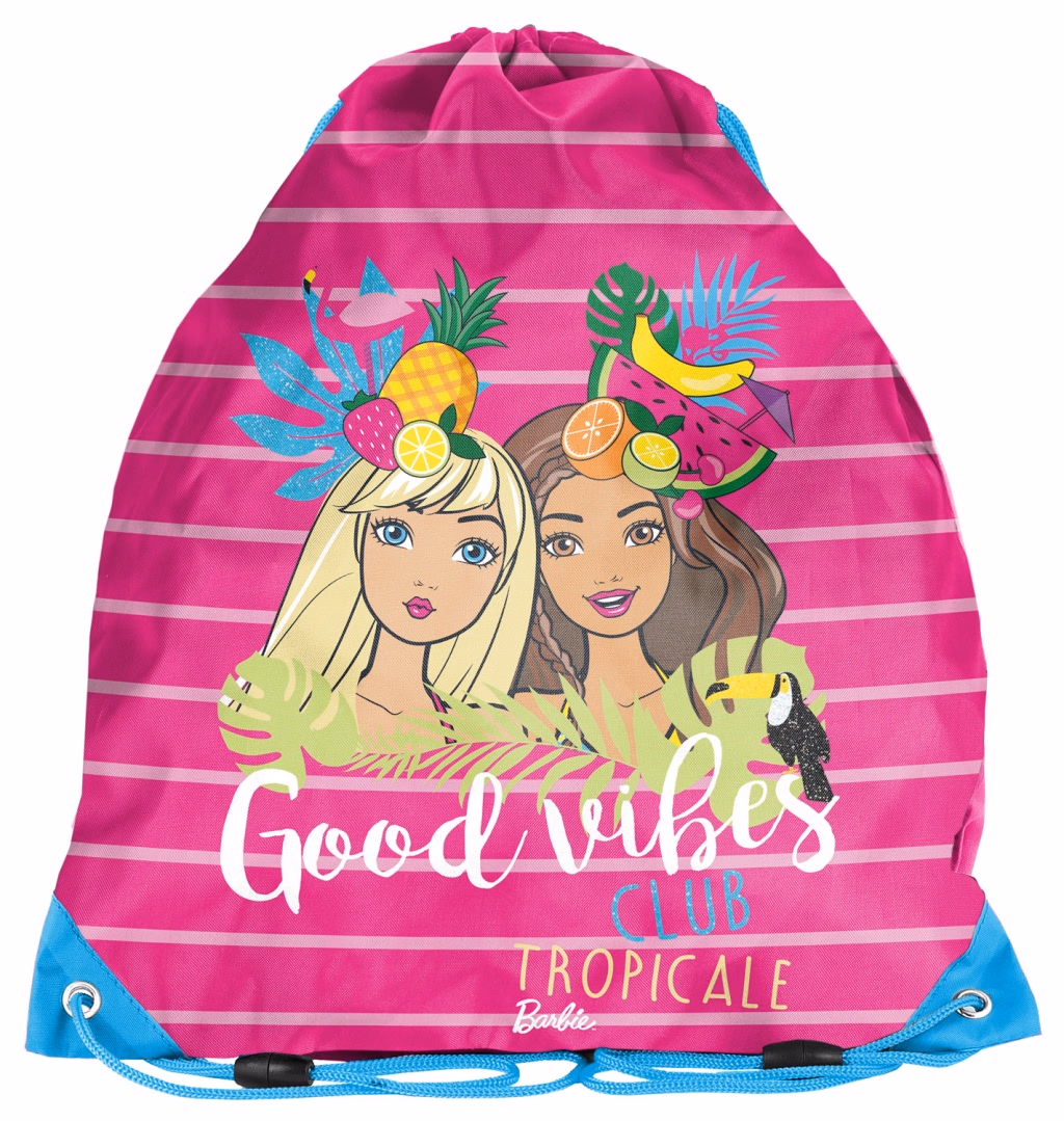 Rózsaszít csíkos tornazsák Barbie Tropical mintás a praktikus megoldások kedvelőinek.