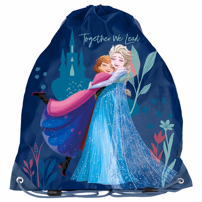 Sötétkék a Jégvarázsból ismert Anna és Elza mintás tornazsák a praktikus megoldások kedvelőinek.
