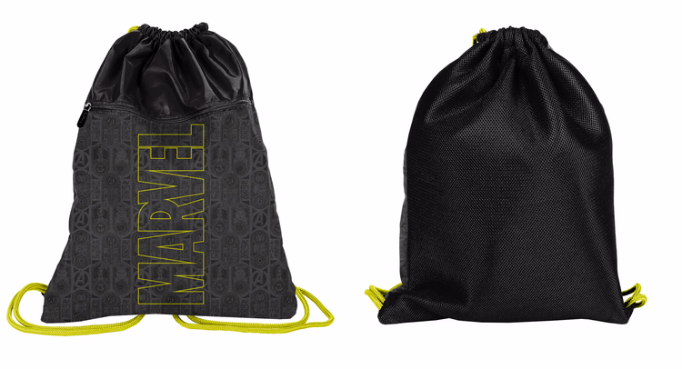 A tornazsák motívuma a népszerű, szuperhős Marvel filmekből ismert. A sárga Marvel felirat látványos és figyelemfelkeltő. A zsák húzózsinórok segítségével zárható, amelyek egyszerű és gyors hozzáférést biztosítanak a zsák belsejéhez. Elején nagy cipzáros zsebbel rendelkezik, így lehetővé téve a felszerelés külön tárolását Vállpánt zsinórok duplázottak, ami lehetővé teszi a zsák viselését háton vagy akár a vállakon is. Mérete: 47x37 cm