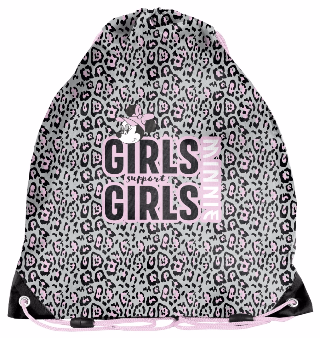 Minnie egeres, párduc hatású mintával díszített tornazsák a praktikus megoldások kedvelőinek. A hátizsák húzózsinórokkal záródik. A zsinórok egyszerű és gyors hozzáférést biztosítanak a zsák belsejéhez. A vállpánt zsinórok duplázottak, így a zsák hordható háton és a vállakon is. A tornazsák mosható, könnyen száradó anyagból készült. Mérete: 38x34 cm Anyaga: Poliészter