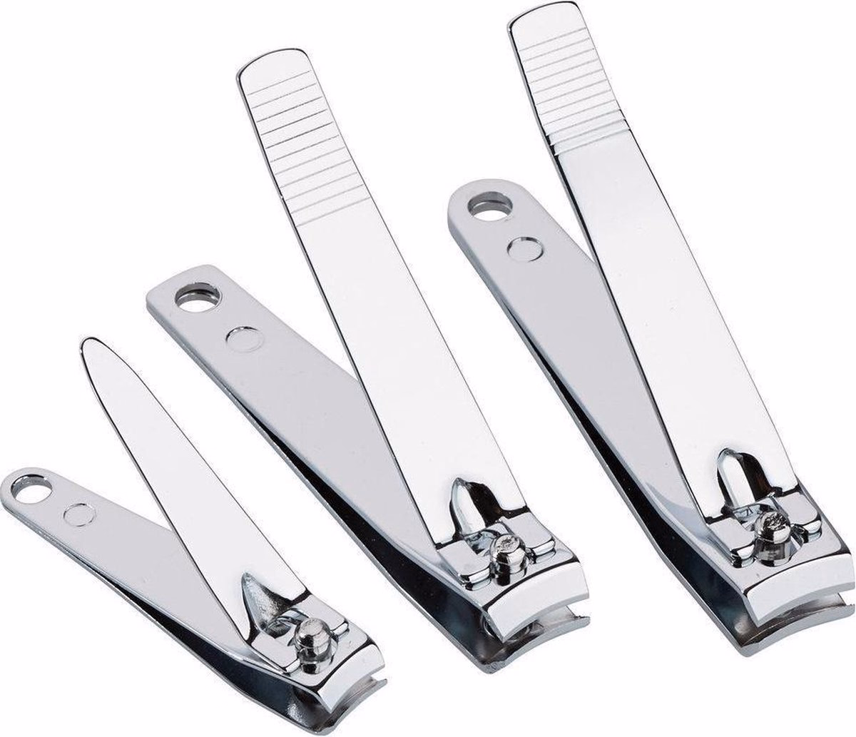 Három darabos különböző méretű rozsdamentes acél körömcsipesz. Egy nagy, egy közepes és egy kicsi. Alkalmas fiataloknak és időseknek.