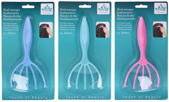 TOUCH OF BEAUTY Masszírozó fejrű, műanyag, 18x9x2,5cm, 3 szín