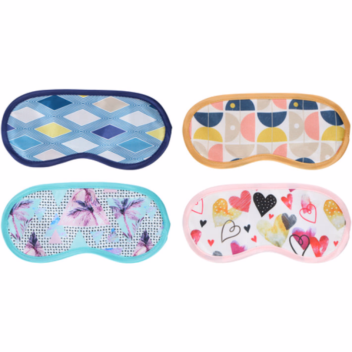 Ez a puha, rugalmas szalaggal ellátott maszk enyhíti a fáradtságot, a duzzadt szemeket, az irritációt, a stresszt. Az alvómaszk 4 vidám mintában kapható. Anyaga: 100% poliészter.